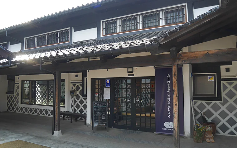 遠野駅前に位置する旅の観光案内所。館内には観光案内所の他、カッパ捕獲許可証や市内の銘菓、地酒等を取り扱っているお土産コーナー、レンタサイクルの貸出、列車や車移動での疲れを癒せる休憩スペースがあります。