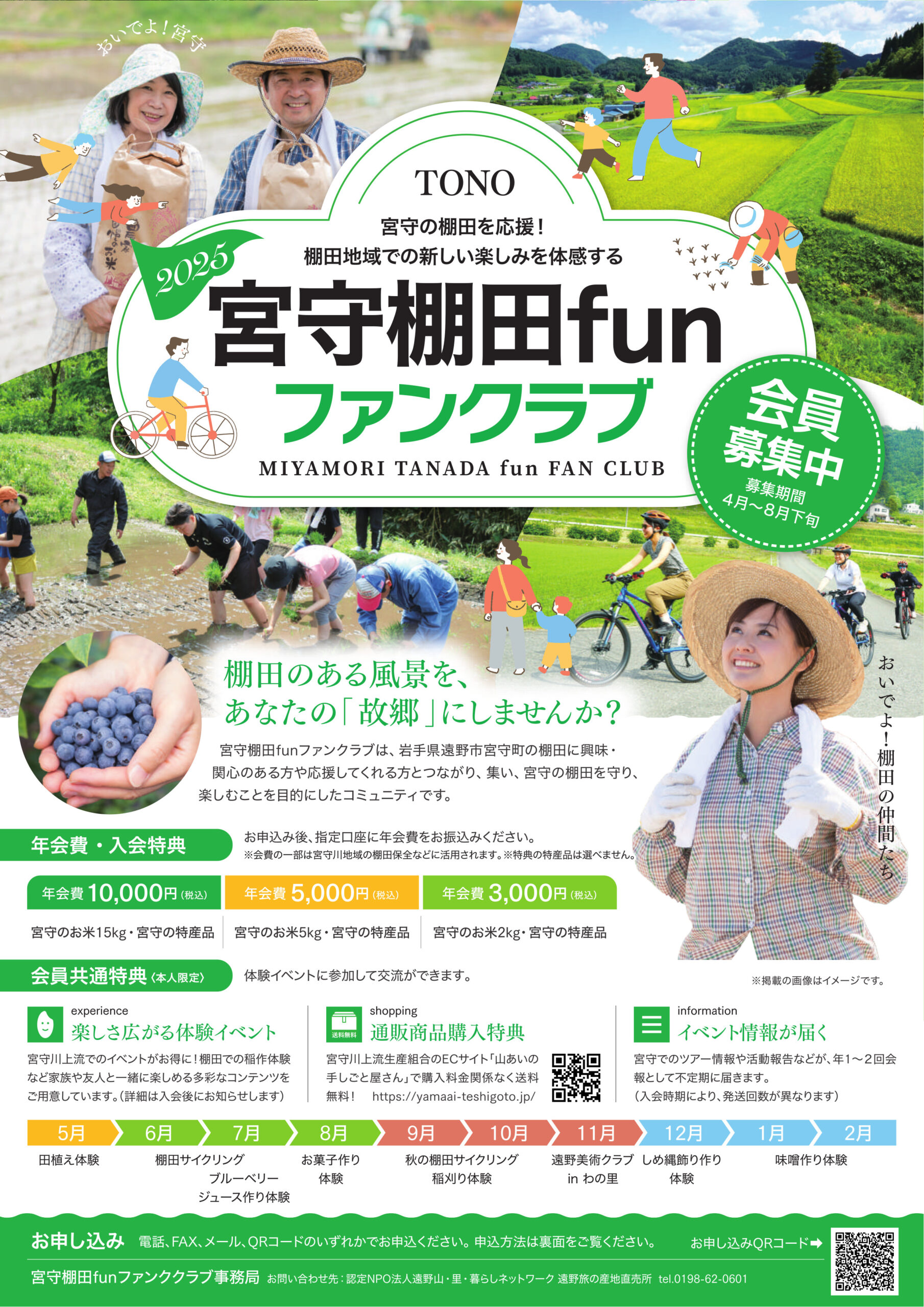 年会費、入会特典などの詳細はコチラからご確認ください→[宮守棚田funファンクラブチラシ]