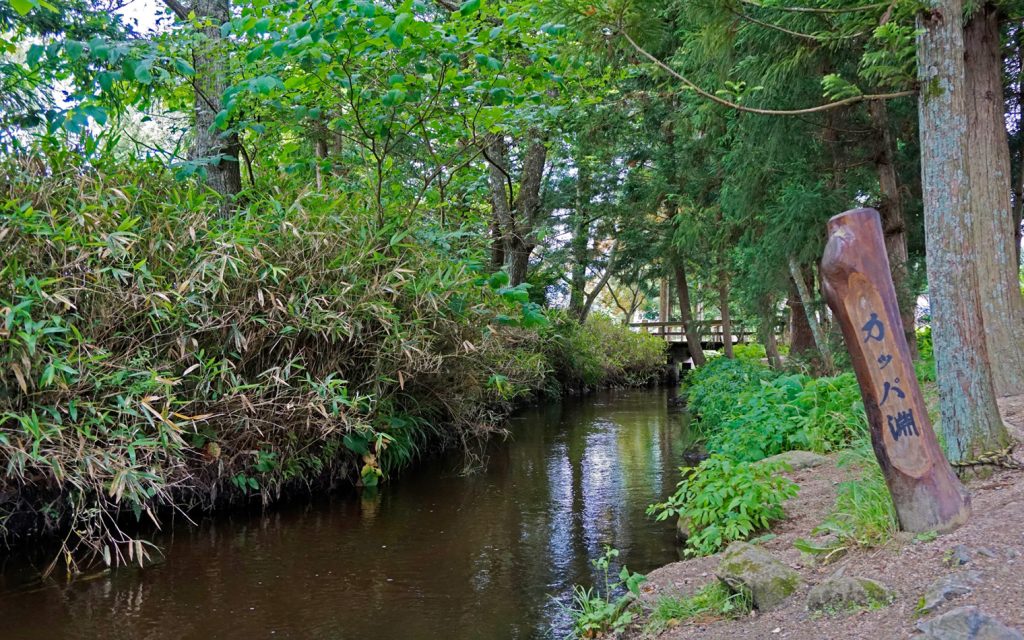 さらさらと流れるカッパ淵は、うっそうとした茂みに覆われ、いつカッパが現れてもおかしくはない雰囲気。