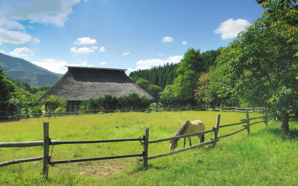遠野ふるさと村は、遠野の昔の農村集落を再現した観光施設です。手入れが行き届いた里山の自然の中に、馬と人が共に暮らしていた南部曲り家を移築・保存し、昭和初期の農村の風景をイメージして整備されています。