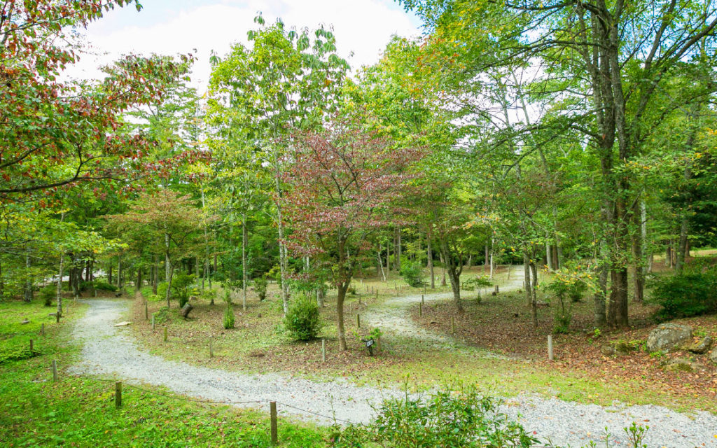 ビジターセンターを通ると、目の前には「マヨイガの森」が広がっています。この地域に古くから「マヨイガ」という、山の中にある不思議な家の話が伝えられており、この家に行けば、訪れた人に幸運や財産がもたらされると言われています。
